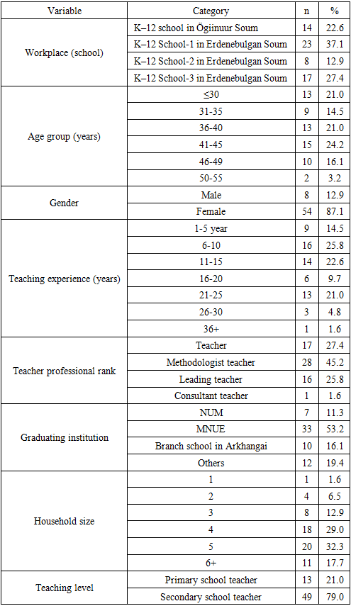 | [31] | Munkh, E., & Solongo, B. (2022). Psychological Support Services for Emergency Management Agency Personnel. Ulaanbaatar. |