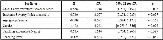 | [32] | Musa, N. A., Moy, F. M., & Wong, L. P. (2018). Prevalence and factors associated with poor sleep quality among secondary school teachers in a developing country. Industrial Health, 56(5), 407–418. https://doi.org/10.2486/indhealth.2018-0052. |