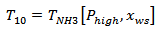 Where xss and xws are the concentrations of the strong and weak solutions respectively. Both concentrations are known and equal to 0.4 and 0.3. The high pressure of the cycle, Phigh, is equal to the condenser pressure, and the low pressure of the cycle, Plow, is equal to the evaporator pressure. The temperature of the outlet high-concentration mixture, T10 can be determined as a function of its concentration and pressure using a program called Engineering Equation Solver (EES) as follows: | (4) |