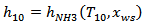 The corresponding enthalpy of the high concentration mixture, h10 can be determined as a function of its concentration and temperature using EES so that.  | (5) |