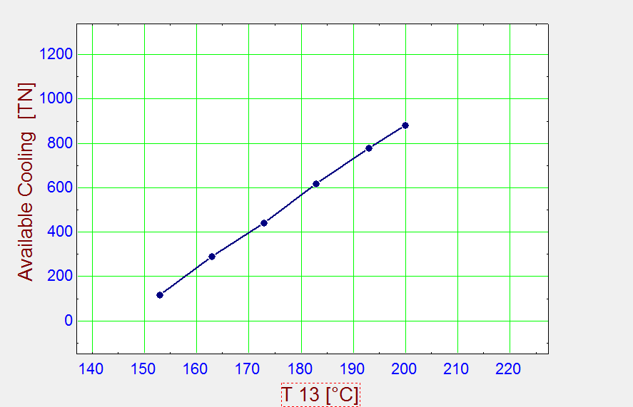 | Figure 4. Inlet air cooled °C at various exhaust temperatures (T13) |