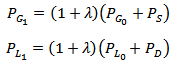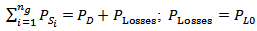 in equation (7) and equation (9) (8) are distributed among all generators; other possible mechanisms to handle increased losses could be implemented, but they are beyond the main interest of the present paper.Therefore, ![]() | (14) |