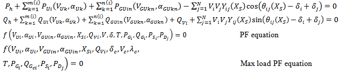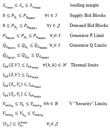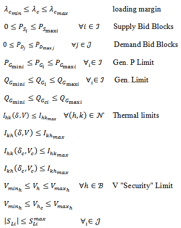 and constraints with a subscript c are introduced to represent the system at a maximum loading condition, which can be associated with any given system limit or a voltage stability condition. Equations