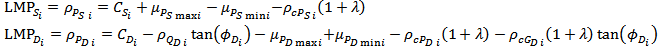 . These LMPs can be decomposed in several terms, typically associated with bidding costs and dual variables (shadow prices) of system constraints. From equation (7) and equation (13), the expressions for LMPs without FACTS obtained as.where