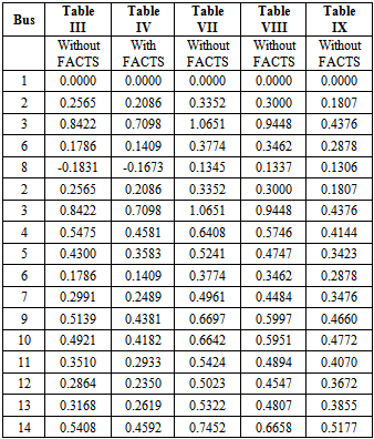 for without and with installing the FACTS devices in Table 3, Table 4, Table 7, Table 8, Table 9, Table 10, Table 11 and Table 12,