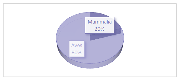 A systematic analysis of animals permitted for hunting in the lowlands of the desert zone of Uzbekistan revealed that they fall into two classes. Among the animals hunted, Aves species accounted for 43 species (79.6%), while Mammalia species accounted for 11 species (20.4%) (Figure 1). Despite the fact that hunting revenues are a vital economic factor in some countries, conservationists organize demonstrations aimed at restricting the hunting of certain species. L. Munro's research provides extensive information on such activist protests. In the American Northwest, protests have erupted against the national pastime of pigeon hunting. International animal welfare organizations are fighting against national hunting traditions in Southern Europe, Asia, and Africa. In the late 1980s, Australian activists identified duck hunting as a significant social problem [14]. | Figure 1. Analysis of animals permitted for hunting in the lowlands of the desert zone of Uzbekistan, by class |
