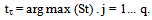 ] be the estimates of the jump sizes. If the number of jump points is not known in advance the above sequential procedure continues for j=1,..., p(say), where p is fixed in such a way that the max(st), t∈ AP is greater than or equal to its critical value Cx(p) and max(st) . Here, t∈ AP +1 is less than its critical value Cx(p + 1). ![]() | (3.1.1) |