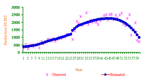 ![]() | Figure 2. Trends in Production based on nonparametric regression |