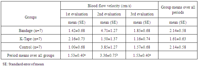 Cite this paper: Asuman Saltan, Yeşim Bakar, Handan Ankarali, Comparison of the Use of Kinesio Tape and Shorts Stretch Bandage to Changes in Volume of the Peripheral Blood Flow, International Journal of Prevention and Treatment, Vol. 4 No. 2, 2015, pp. 23-28. doi: 10.5923/j.ijpt.20150402.01.