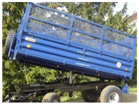 Increase of safety of service of agricultural machines is one of the major tasks on enhancement of agricultural production in our country. The successful solution of problems of support of safe maintenance and reliability of machines in operation, saving of metal and lightness of constructions probably only on the basis of the theory and application in practice of design of the modern methods and funds of calculation for durability, wear resistance and rigidness. One of the major technological processes, for example, in an agronomical complex are transport operations on transportation of different loads to what different trucks and the autotractor trains consisting of tractors of aggregated with trailers and semi-trailers are widely applied. The broadest application is found by tractor transport. As tractors to transportation of trailers and semi-trailers apply wheel tractors of a class 0,9t, such as a tractor four-wheel T-28X4M-C1 and T-40AM. Wheel tractors of a class of 1,4 t it is the MTZ-52, MTZ-80, YuMZ-6M tractors, etc. Constructions of tractor dumping trailers are also diversiform and generally it is tractor biaxial dumping trailers of models 2PTS-4-793-01, 2PTS-4-887, 2-PTS-4M, and also heavy-load tractor semi-trailers of model 3-PTS-12 with a loading capacity of 12,0 t aggregated with the wheel K-700 tractors, etc. [1-3]. Basis of construction of all tractor trailers is the chassis which serves for installation on it of a platform and adaptations.Usually in the package of the chassis are included: frame, running gear, the tractive coupling device, the brake system, the rolling-over mechanism and electric equipment (fig. 1). The frame of the trailer represents welded construction and consists of two stamped longerons connected among themselves cross-pieces. In a middle part of a frame by means of a support bracket the lower support of a hydraulic jack is welded. When trailers are involved in transportation of light-weight loads of their platform are supplied with the added side folding and stationary edge boards having under operating conditions low reliability. Usually at all models of autotractor dumping 2PTS-4 trailers hydraulic jacks are executed telescopic type from steel pipes entering each other. For the purpose of increase of safety of service and repair of nodes and details of the trailers which are in hard-to-reach spots, they are supplied with safety stands of platforms. Usually in the package of the chassis are included: frame, running gear, the tractive coupling device, the brake system, the rolling-over mechanism and electric equipment (fig. 1). The frame of the trailer represents welded construction and consists of two stamped longerons connected among themselves cross-pieces. In a middle part of a frame by means of a support bracket the lower support of a hydraulic jack is welded. When trailers are involved in transportation of light-weight loads of their platform are supplied with the added side folding and stationary edge boards having under operating conditions low reliability. Usually at all models of autotractor dumping 2PTS-4 trailers hydraulic jacks are executed telescopic type from steel pipes entering each other. For the purpose of increase of safety of service and repair of nodes and details of the trailers which are in hard-to-reach spots, they are supplied with safety stands of platforms. | Figure 1. General view of the autotractor dumping trailer model 2PTS-4 |