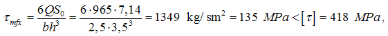 when, S0 – static moment about the neutral axis x of the square-section lying on one side at the level at which the voltage is determined and is equal to S0 = b/2(h2/4 – y2);