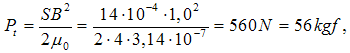 S1 – area of the contacting surfaces of the permanent magnet and a half spherical surface clamp diameter 30mm,