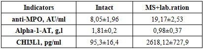In metabolic syndrome, systemic inflammation is accompanied by increased activity of neutrophils and macrophages. This condition is manifested by: increased levels of anti-MPO, excessive production of reactive oxygen species, and endothelial and epithelial damage. A sharp increase in CHI3L1 levels reflects the activation of fibroblasts and increased extracellular matrix synthesis against this background of inflammation.