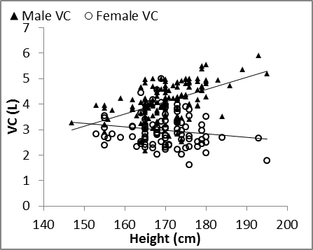 | Figure 10. MVV vs. Height in males and female |