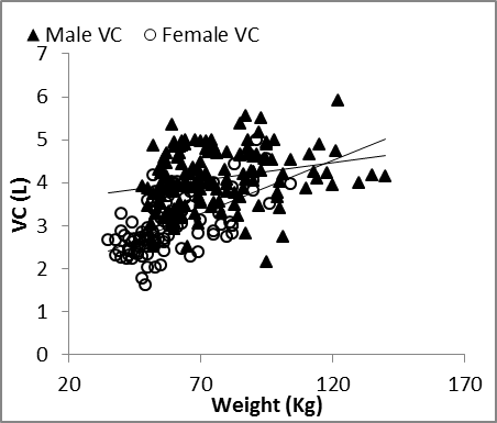 | Figure 2. Nasal VC vs. weight in males and females |