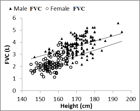 | Figure 3. Nasal FVC vs. height in males and females |