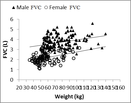 | Figure 4. Nasal FVC vs. weight in males and females |