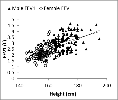 | Figure 5. Nasal FEV1 vs. height in males and females |