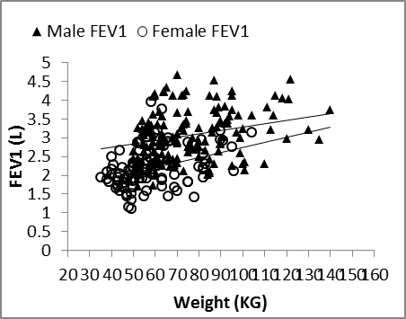 | Figure 6. Nasal FEV1 vs. weight in males and females |