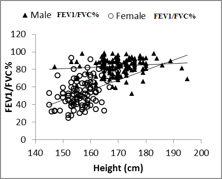 | Figure 7. Nasal FEV1/FVC% vs. height in males and females |