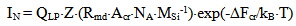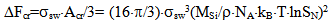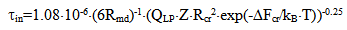 where ΔFcr is a free energy change connected with nuclei formation of critical radius Rcr, Acr is the surface area of critical nuclei, Acr=4•π•Rcr2, σsw is the surface tension on silica-water boundary, Rmd is the rate of molecular precipitation of SiO2 onto a solid surface, g•(cm2•min)-1, kB is Boltzmann constant, MSi is the molar mass SiO2, NA is Avogadro constant, QLP is Lothe-Paund factor, QLP =3,34•1025 kg-1, Z is Zeldovich factor, ncr is the quantity of molecules of SiO2 in nuclei of critical size.Critical radius, quantity of molecules in nuclei of critical radius, free energy and Zeldovich factor were estimated in accordance with the following formulas (Weres 0., Yee A., Tsao L., 1981):  | (6) |