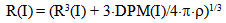 8) The calculation of particle mass difference DPM of every class during the time DT in accordance with the equation: DPM(I)=4•π•R2(I) •Rmd•DT9) The calculation of particle radius R(I) corresponding to a new value of particle mass in every class: | (22) |