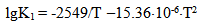 The dependence of constants of orthosilicic acid ionization of the first K1 = [H+]•[H3SiO4-]/[H4SiO4] and second K2 = [H+]•[H2SiO42-]/[H3SiO4-] stages on the temperature has the following form: | (27.1) |