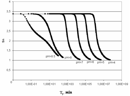 | Figure 8. The dependence of supersaturation SN on time. t=60℃, рН=8 |