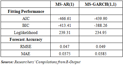 4.1. Comparison of MS-AR(1) and MS-GARCH(1,1) Models