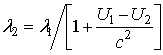 where λ2 is the wave length recorded by the receiver; λ1 is the wave length emitted by the source,